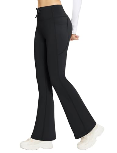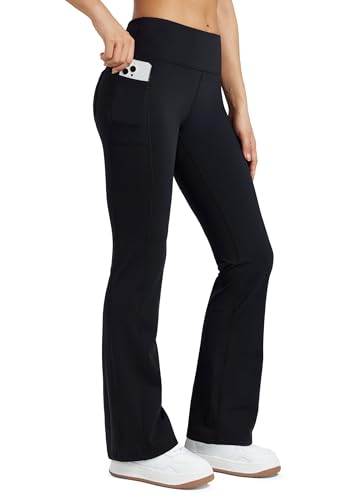 baleaf Dam utsvängda leggings yogabyxor med fickor bootcut byxor crossover hög midja träning svart 81 cm XL, Svart-32 tum, XL