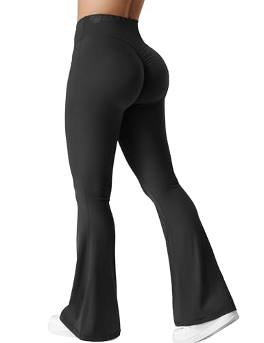 ZAAYO Utsvängda leggings för kvinnor, scrunch, v-formad midja, yogabyxor med magkontroll och bootcut, träningsleggings, svart, M