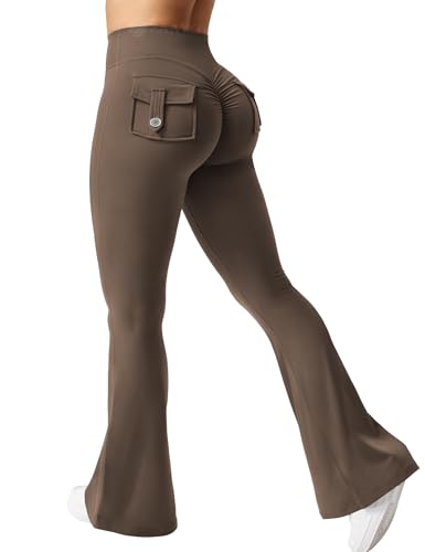 ZAAYO Utsvängda leggings för kvinnor, scrunch, v-formad midja, yogabyxor med magkontroll och bootcut, träningsleggings, S