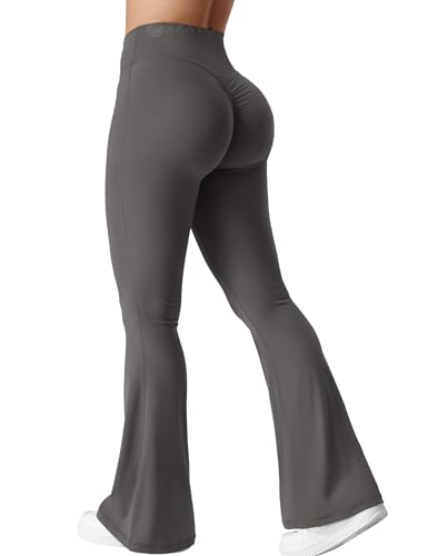 ZAAYO Utsvängda leggings för kvinnor, scrunch, v-formad midja, yogabyxor med magkontroll och bootcut, träningsleggings, Mörkgrå, S