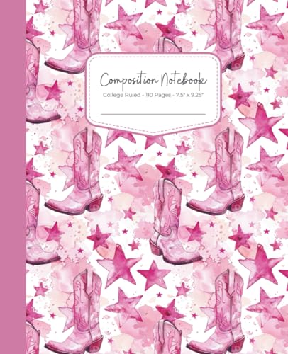 Composition Notebook College Ruled - 110 Pages - 7.5" x 9.25": Western Boots Aesthetic Daily Writing and Journaling, Wildheart & Co. Cowgirl Journal ... Girls & Women – Pink Rodeo Dreams Collection