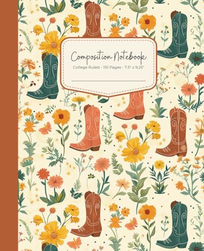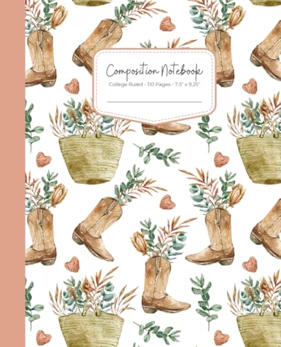Composition Notebook College Ruled - 110 Pages - 7.5" x 9.25": Wildheart & Co. Boho Cowgirl Journal for Girls, Teens & Young Women – Western Boots Aesthetic – 2025 Sweet Rodeo Dreams Collection