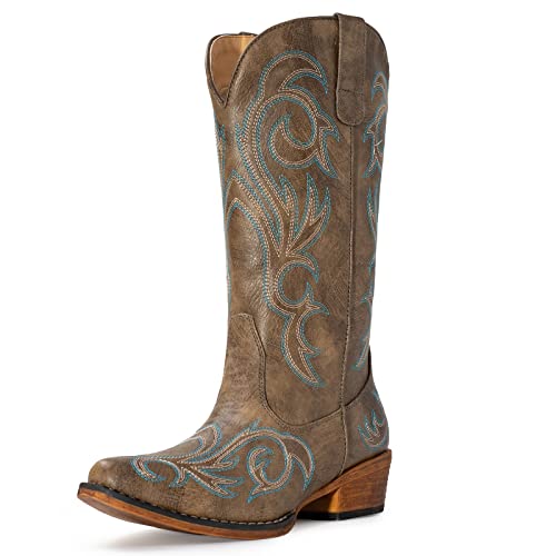 IUV Cowboy Boots For Women Pointy Toe Women's Western Boots Cowgirl Boots Mid Calf Boots