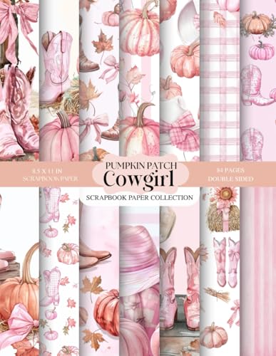 Pumpkin Patch Cowgirl Scrapbook Paper Collection: 52 Double-Sided Pages · 8.5 x 11 Inch Scrapbook Paper Pad with Pumpkins, Cowgirl Boots, Bows & Fall Western Aesthetic for Journaling, Collage & Crafts