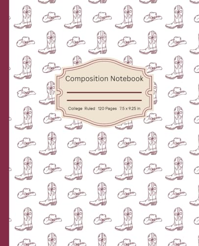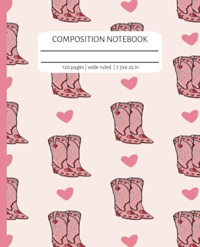 Composition Notebook: Cowgirl Boots Cute Illustration | Western Aesthetic Gift Journal For College, Students, School, Work, Office | Wide Lined |