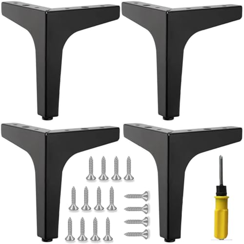 CNKHDZ 4 stycken Ersättning Möbelfötter Svart,10cm Triangelbordsben,Möbelfötter i metall moderna ersättningsfötter för byråer,stolar,sängar,skåp,bord,skåp DIY ersättningsfötter för soffa