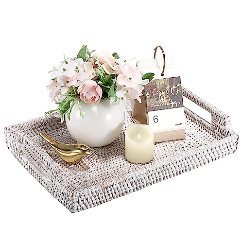 IGNPION Rotting serveringsbricka hem badrum gäst handduksbricka dekorativ visningsbricka vävt bord förvaringsbricka med handtag bord skrivbord organiseringsbricka för porslin, kök, prydnad