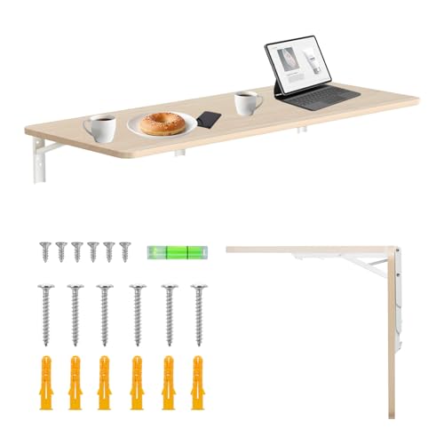 Maclean hopfällbar vägghylla lastkapacitet 50 kg fällbart bord med säkerhetslås vikbart vred ingår nivå för kök badrum (ljust trä, 100 x 40 cm)