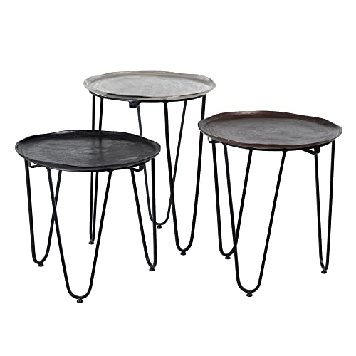 LOLAhome Uppsättning av 3 bord bricka med aluminium gaffelben och svart järn