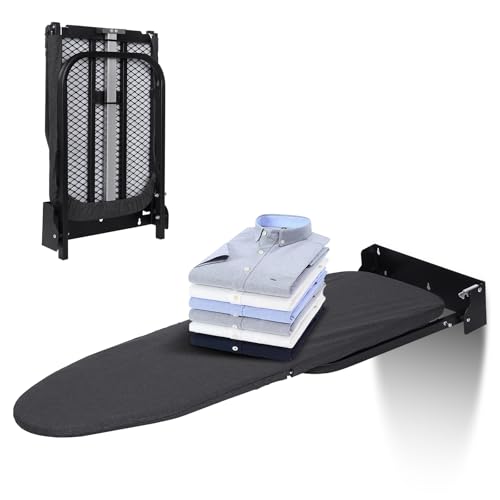 Sinbide Vikbar strykbräda 93 x 33 cm med 100 % bomullsskydd, hopfällbart strykbräda, kompakt förvaring, kompakt förvaring, kompakt bord, inbyggd järnhållare, extra stabil bricka, svart