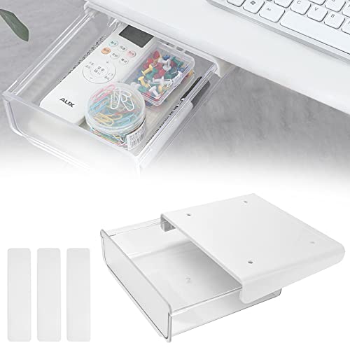 BUZIFU Under skrivbord låda organisatör, självhäftande under bord låda dold skrivbord låda bricka stor kapacitet skrivbordsförvaringslåda penna pennfodral för hem kontor skola, avvisar röriga