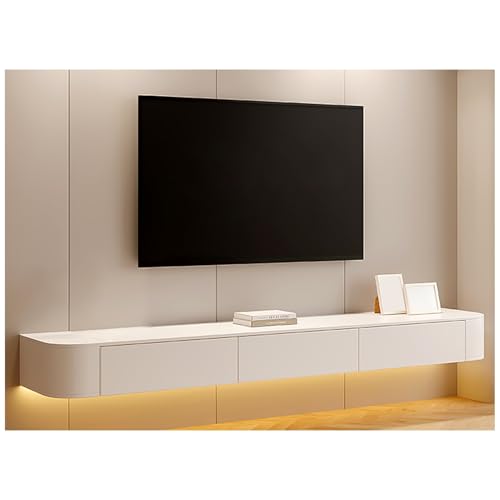 Vitt flytande TV-skåp med lådor och dörrar, väggmonterad mediakonsol, TV-hylla, TV-förvaringsskåp, Nöjescenter i trä, TV-bord, TV-bricka för vardagsrum (Vit, 160x24x20 cm)