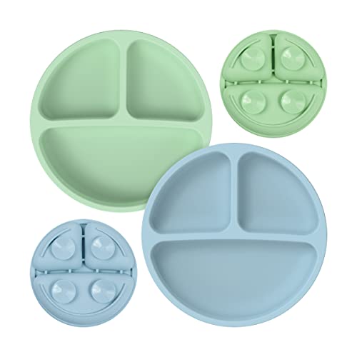 Baby sugplattor – RIGHTWELL 2-pack silikon baby avvänjningsplatta, babytallrikar med sug för småbarn barn självmatning – halkfri uppdelad platta lämplig för barnstolar, bricka och bord