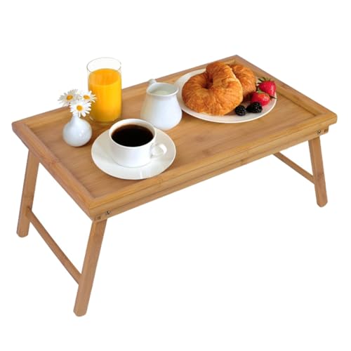 Sängbricka bord vikbara ben med handtag frukostbricka för soffa att äta, rita, tallrikar bambu servering knäbord mellanmål bricka