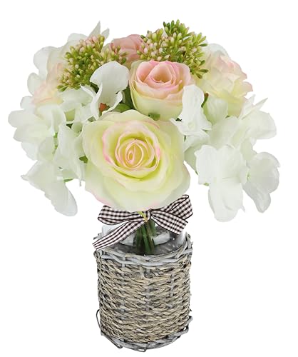 Rosenbukett med hortensior och utbildning i en vas 30 cm rosor konstgjorda blommor bordsdekoration mittstycke bord blommor oäkta dekorativa blommor konstgjorda bröllop blomblad bukett bukett