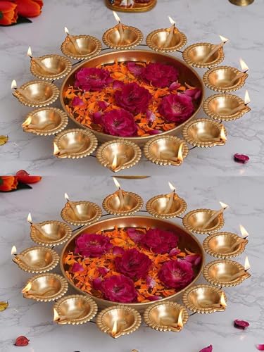 Kalakriti 2 st metall indisk dekorativ Urli skål set |Hem bord blomma dekoration |Urli Diya Diwali Navratri Pooja inflyttningsfest Haldi dekor | returgåvor, 35 cm vardera