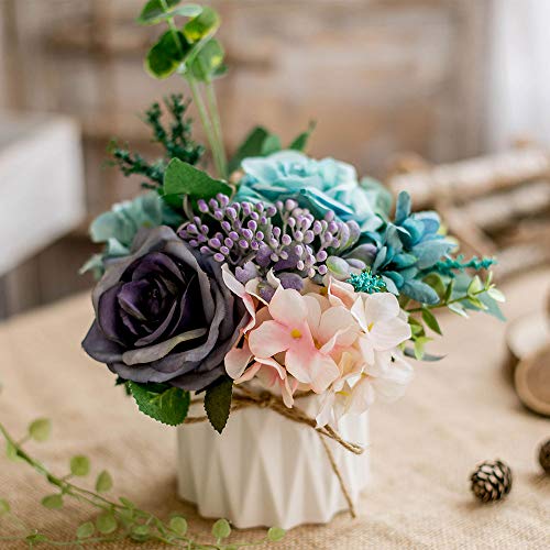 Konstgjorda blommor, falska blommor, silkesrosbuketter, dekoration med keramikvas för bord, hem, kontor, bröllop (blandade färg-3)