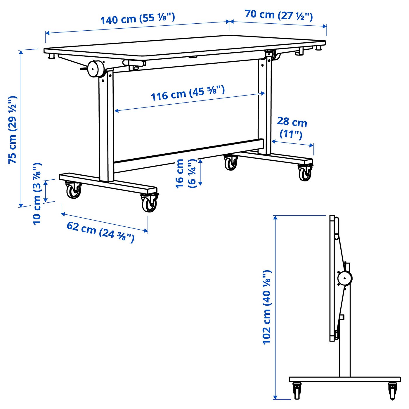 IKEA MITTZON fällbart bord med hjul 140x70 cm