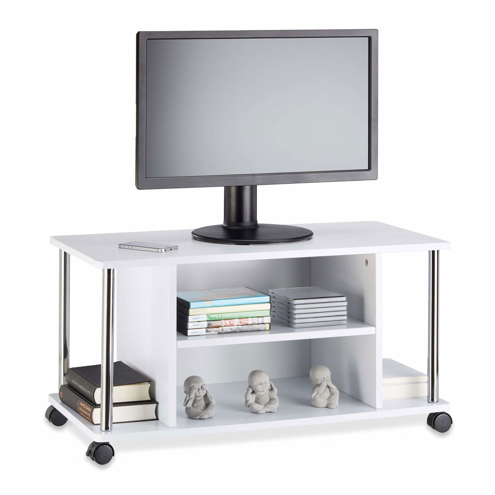 Kare Lounge TV-bord, med hjul vitt stål (90x42)
