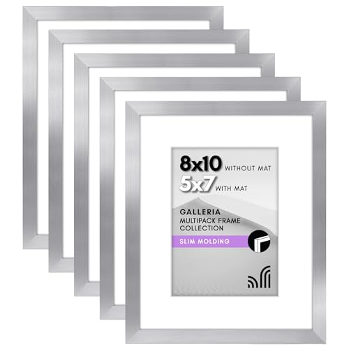 Americanflat Galleria Set med 5 ramar för bilder 20,3 x 25,4 cm med polerad plexiglas, 12,7 x 17,8 cm ram med passepartout eller 20,3 x 25,4 cm utan ram för bord och vägg, silver