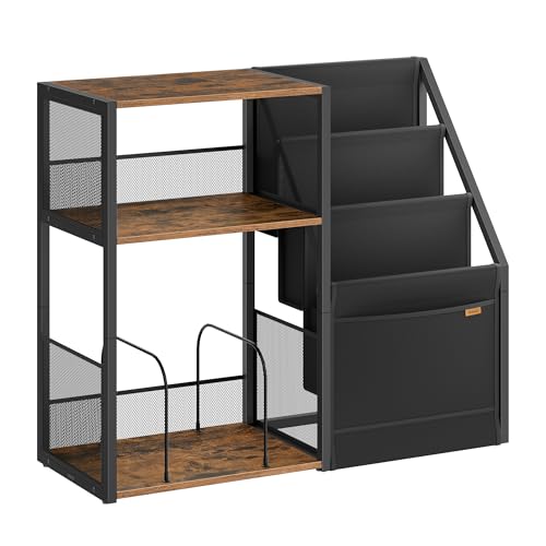 VASAGLE skivspelarställ, 3 hyllplan, sidobord, skivförvaring, upp till 140 album, bord för vardagsrum, sovrum, vintagebrun LET276K01