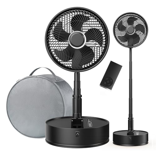 Marchpower Tystgående Ståfläkt, 2 I 1 Hopfällbar Ståfläkt 10" Luftcirkulation Med 5 Hastigheter Pekskärm Fjärrkontroll Timer För Bord Sovrum Kontor Resor, Svart