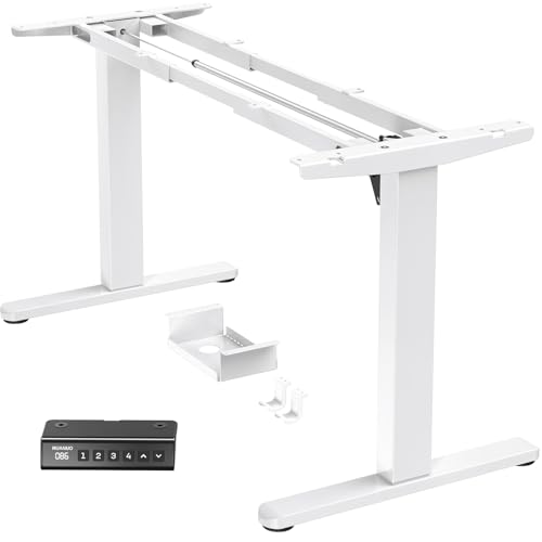HUANUO ståbordsstomme med borstlös motor, 100 kg bärkraft Elektriska bordben, Höjjusterbar bordstomme för 90 x 220 cm skivor, Endast stomme