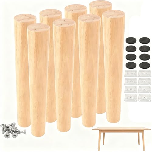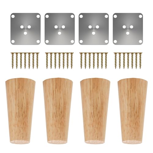 4 stycken bordsben i trä, koniska ersättningskomfort, möbelfötter, sofffötter, sockelfötter, bordsfot av ek, möbelben med monteringsplattor och skruvar för stolar och soffa, säng, skåp, soffstol (8