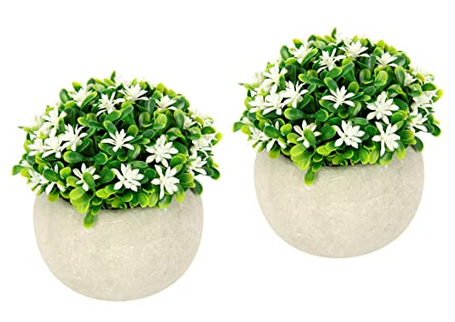 Flair blomma mini buske i kruka konstgjord vax blomma buske bordsdekoration mittpunkt plastblommor blomster konstgjorda växter blommor falsk dekorativ växtlåda blomdekoration, vit, 11 x 12 x