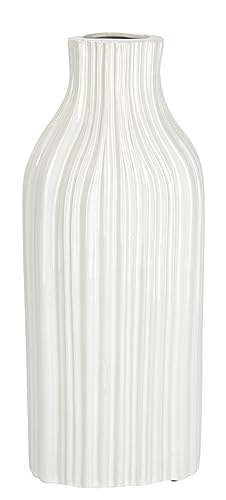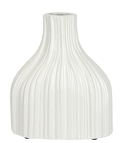 Blomvas av keramik, räfflad bukig flaskform, riven, glänsande keramikvas, dekoration, dekorativ vas för blommor, pampasgräs, torkade blommor, grenar, konstgjorda blommor, bordsdekoration