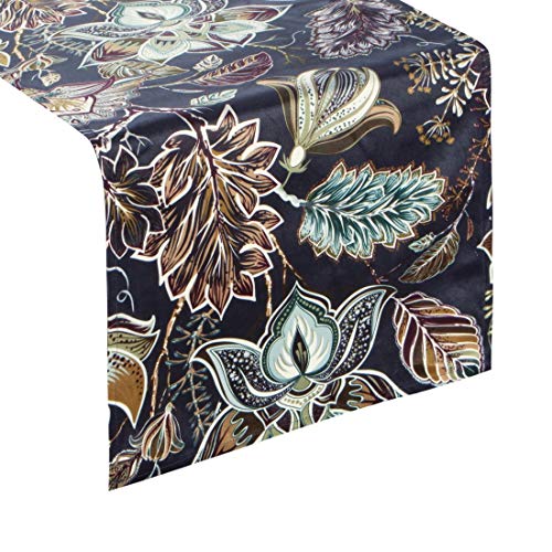 Eurofirany bordsduk bordslöpare sammet blommönster blommor blad blad blad bordsdekoration bordsduk sammet ädelsten elegant 1 st, marinblå, 33 x 140 cm