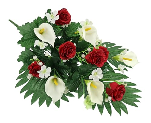 Flair Flower gravprydnad med konstgjorda rosor och calla 48 cm upplaga, konstgjord blomma, gravdekoration, kyrkogård, dekoration, sorgsdekoration, blommor, arrangemang, blomma, bordsdekoration,