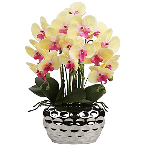 Konstgjorda orkidéer, konstgjorda dekorativa blommor, plastblommor som riktiga med en äkta touch, blommor i keramikkruka, bordsdekoration, för fönsterbräda, höjd 44 cm