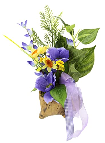 Arrangemang av konstgjorda påskliljor anemoner och beiwerk i en kruka i trälook, konstgjord oäkta dekoration, konstgjorda blommor, påskdekoration, vårdekoration, bordsdekoration, blomdekoration