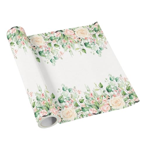 PAW – Bordslöpare av Airlaid (40 cm x 5 m) I bordsdekoration för nattvard, konfirmation, bröllop, födelsedag, trädgårdsfest, dop I bordsband bordsduk – natur, blad, blommor I färg: Floral Moments