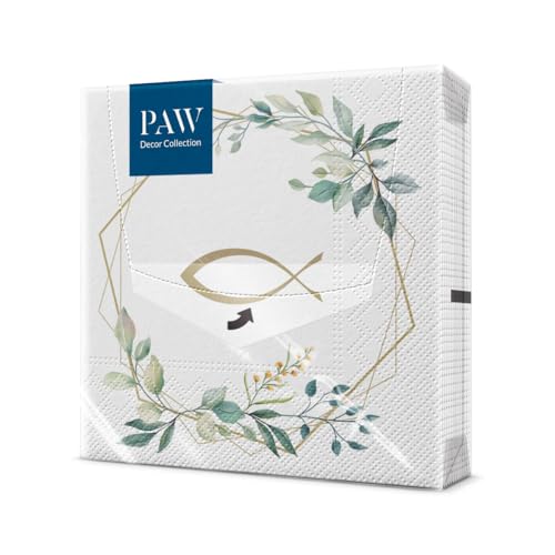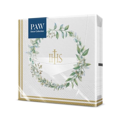 PAW - Pappersservetter 3 lager (33 x 33 cm) I 20 stycken I Perfekt för Communion, Confirmation, dop I Perfekt för pojkar och flickor I Bordsdekoration Eleganta Servetter I First Communion Örter
