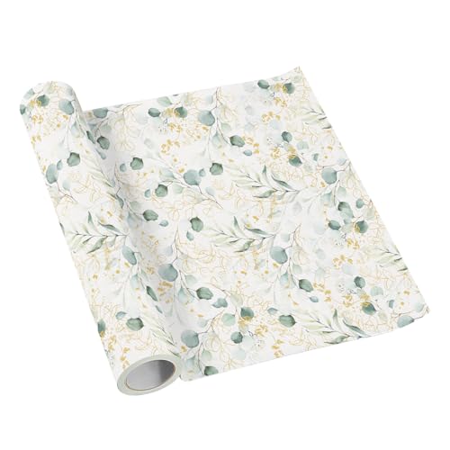 PAW – Bordslöpare av Airlaid (40 cm x 5 m) I bordsdekoration för nattvard, konfirmation, bröllop, födelsedag, trädgårdsfest, dop I bordsband bordsduk – blad, eukalyptus I Färg: Golden Eucaliptus