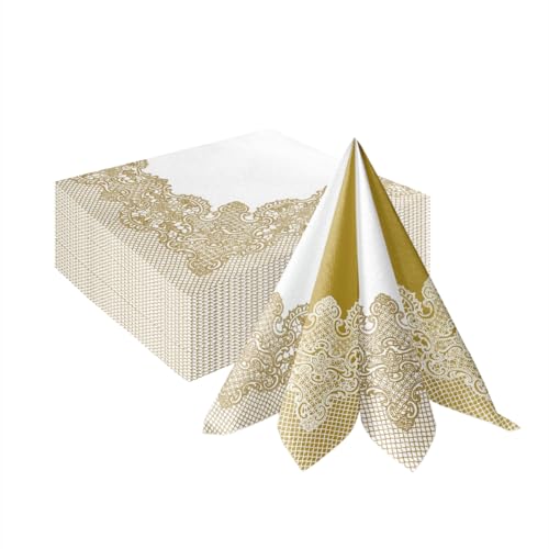 PAW - Airlaid servetter (40 x 40 cm) I 50 st I perfekt för bröllop, dop, nattvard, födelsedag I högkvalitativ bordsdekoration bakmönster I dammliknande I omvänd barockfodral guld
