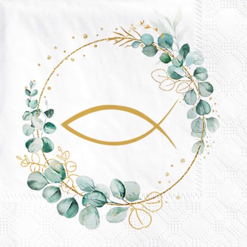 40 servetter fisk, eukalyptus vita servetter, servetter bordsdekoration för pojkar och flickor för nattvard, konfirmation, dop och mer Jiaju, hushållsartiklar