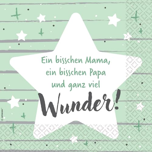 Riethmüller Servetter "lite pappa, lite mamma" 33 cm x 33 cm, 16 stycken – stora pappersservetter med ordspråk för födelsedag & dop – bordsdekoration