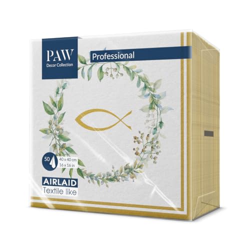 PAW - Airlaid servetter (40 x 40 cm) I 50 stycken I perfekt för bröllop, dop, nattvard, födelsedag I högkvalitativ bordsdekoration tygservetter I servetter dammliknande I Första nattvarden Guldfisk