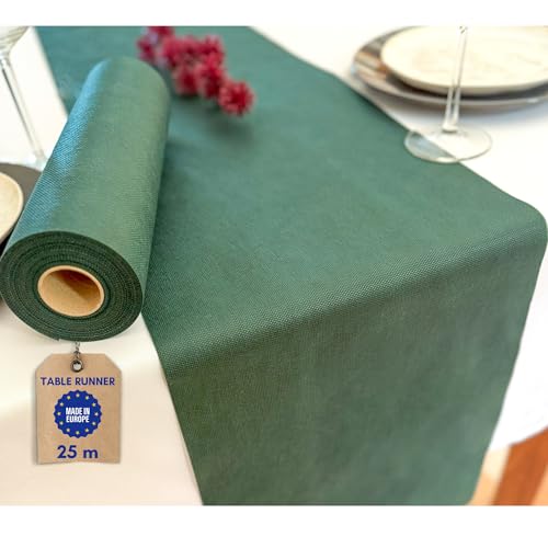 NATUARTE, Bordslöpare mörkgrön, tyg icke-vävd på 25 meter x 30 cm, icke-vävd bordsdekoration, bröllopsdekoration tyg dop nattvardsgångar födelsedagar, bordskjol, mörkgrön färg