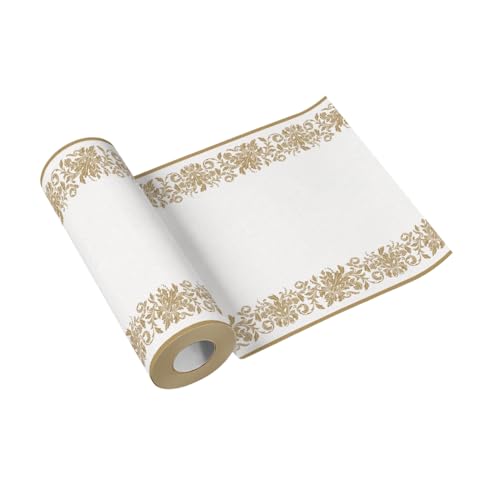 PAW – Bordslöpare av Airlaid (40 cm x 24 m) I bordsdekoration för nattvard, konfirmation, bröllop, födelsedag, trädgårdsfest, dop I bordsband – klassiskt ornament, guld I färg: Gyllene prydnad