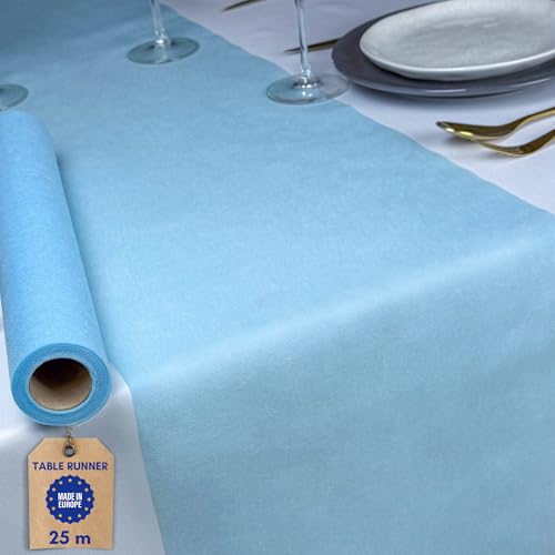 PAW – Bordslöpare av Airlaid (40 cm x 24 m) I bordsdekoration för nattvard, konfirmation, bröllop, födelsedag, trädgårdsfest, dop I bordsband – enfärgad, blå I färg: Monocolor (Light Blue)