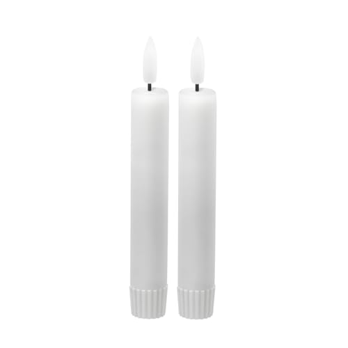 LED Universum – uppsättning med 2 lysdioder, äkta vax, stavljus, vit, 15 cm varmt vitt, för 1 x AAA per ljus (ingår ej) bordsdekoration för bröllop, jul, fester, fester (vit 15 cm – set om 2)