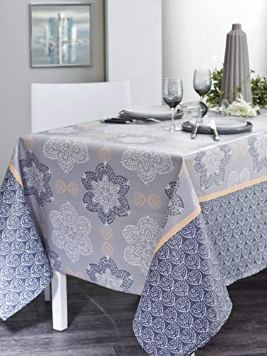 AmeliaHome Bordsduk, 140 x 350 cm bordsduk, fläckskydd, lotuseffekt, tvättbar, vattenavvisande, ornament Gaia silver
