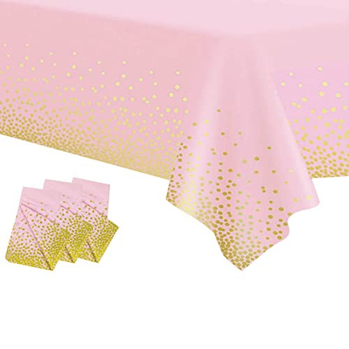 Bordsduk i plast, engångsduk för fest, bordsskydd, rektangulär, stor, för fest, picknick, babyshower, julfest, julbordsdekoration, konfetti, rosa och guldprickig, 137 x 274 cm, 3-pack