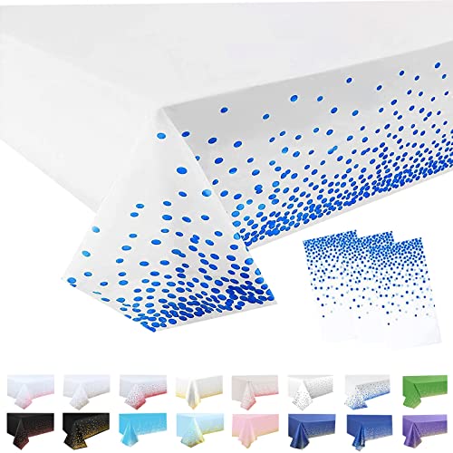 Bordsduk i plast, engångsduk för fest, bordsskydd, rektangulär, stor, för fest, picknick, babyshower, julfest, julbordsdekoration, vit och blåprickig, konfetti, 137 x 274 cm, 3-pack