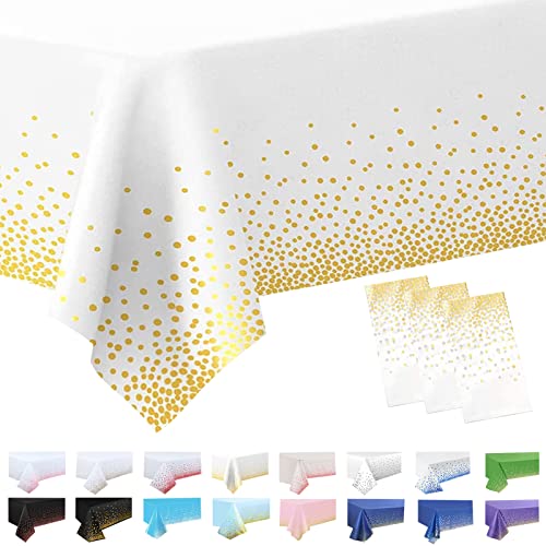 Bordsduk i plast, engångsduk för fest, bordsskydd, rektangulär, stor, för fest, picknick, babyshower, julfest, julbordsdekoration, konfetti, vit och guld, 137 x 274 cm, 3-pack