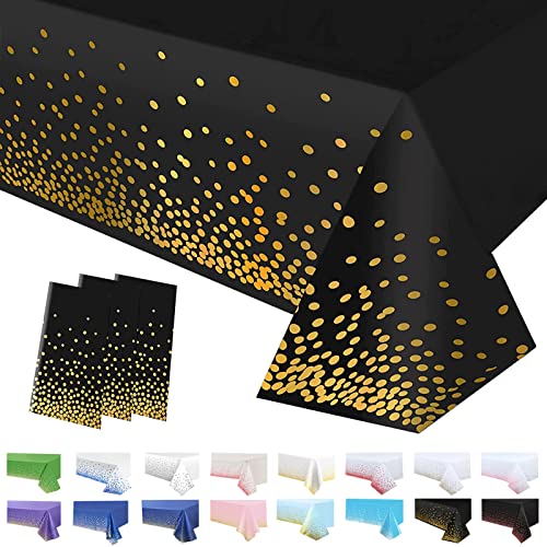 Bordsduk i plast, engångsduk för fest, bordsskydd, rektangulär, stor, för fest, picknick, babyshower, julfest, julbordsdekoration, konfetti, svart och guldprickig, 137 x 274 cm, 3-pack